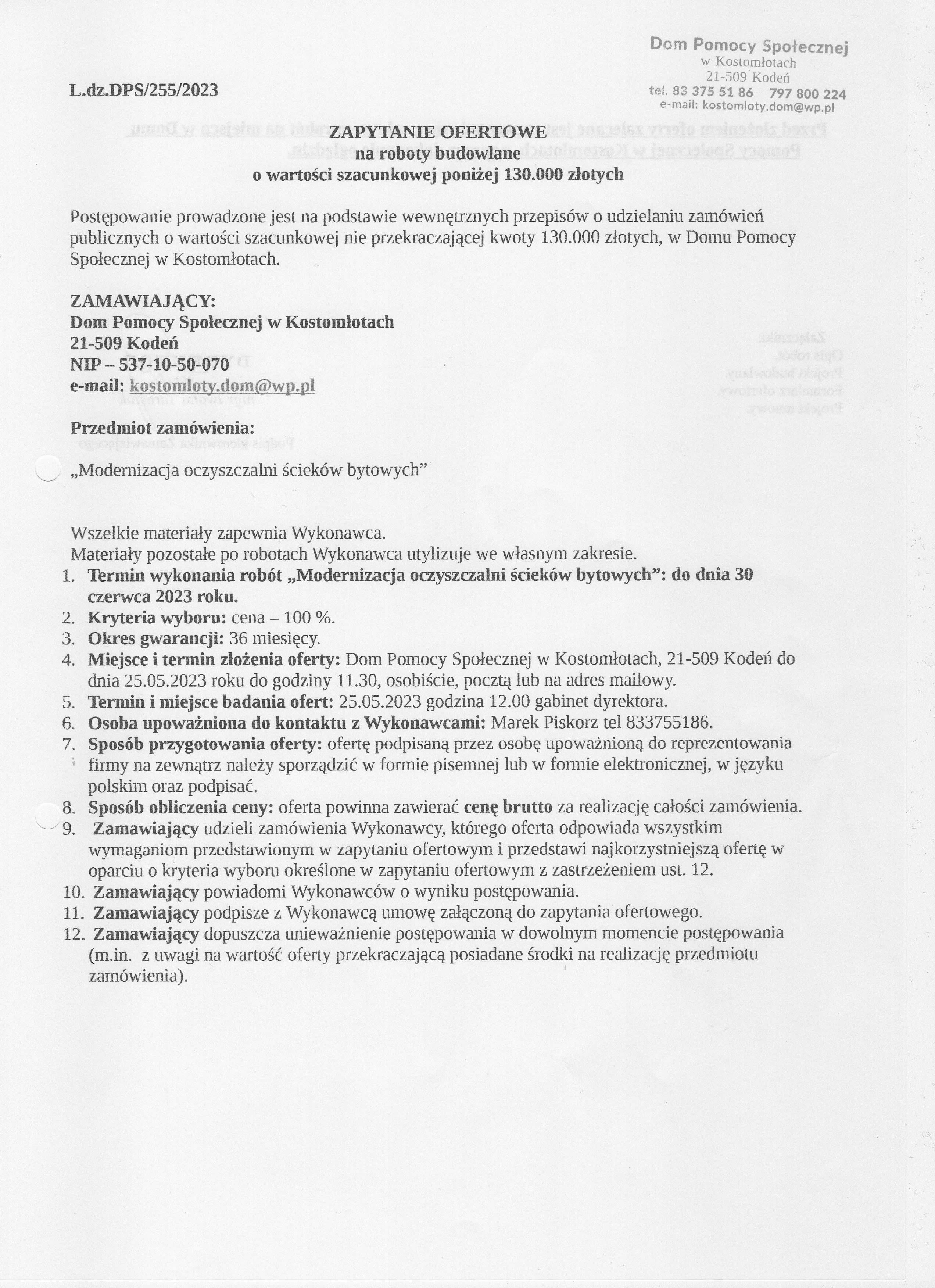 powrót do listy przetargówModernizacja oczyszczalni ścieków bytowych