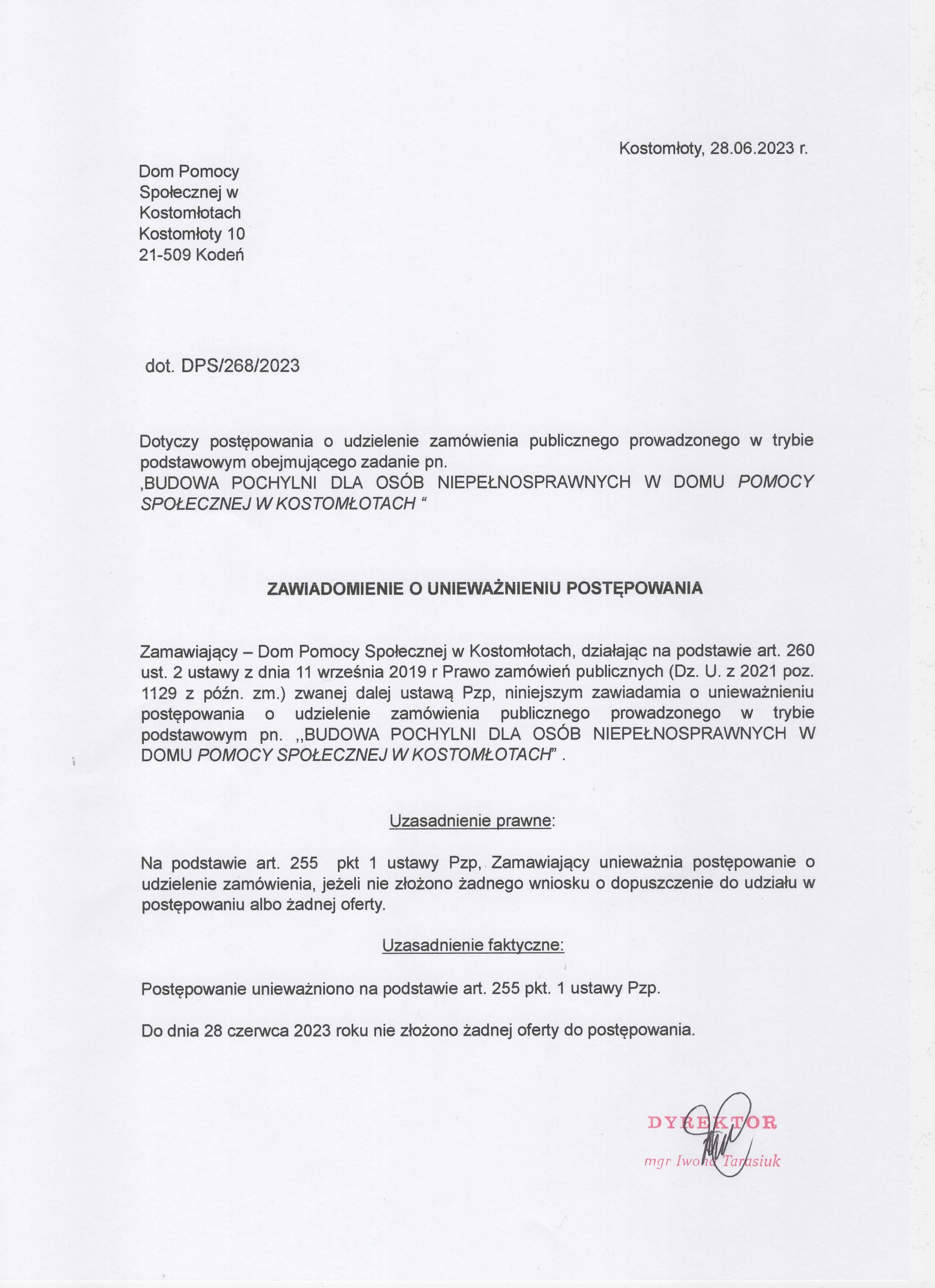 powrót do listy przetargówBudowa pochylni dla osób niepełnosprawnych w Domu Pomocy Społecznej w Kostomłotach
